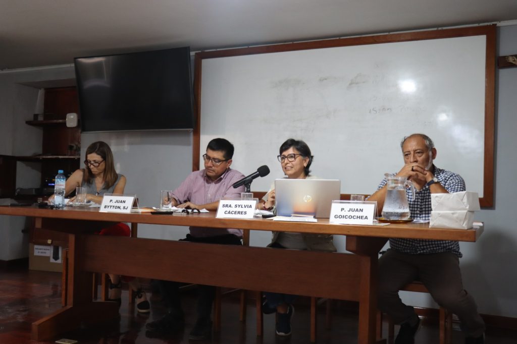 Luego se contó con un panel de cuatro invitados. El Cardenal Pedro Barreto SJ, presidente de la Conferencia Eclesial de la Amazonía – CEAMA, compartió su mirada desde la Iglesia y las encíclicas del Papa Francisco. Luego, la Sra. Alicia Abanto, experta en gestión ambiental y derechos de los pueblos indígenas, abordó el tema desde la legislación peruana.