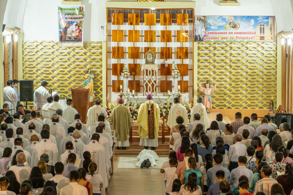 El sábado 26 de julio celebramos la ordenación presbiteral de Pablo Hernández SJ. La ceremonia, realizada en la Iglesia Matriz de Bellavista (Jaén, Cajamarca), fue presidida por Mons. Alfredo Vizcarra SJ, Arzobispo de Trujillo y Administrador Apostólico del Vicariato San Francisco Javier, y concelebrada por Mons. Humberto Tapia, Obispo de la Diócesis de Chachapoyas, el P. Provincial Victor Hugo Miranda SJ y un nutrido grupo de jesuitas y sacerdotes diocesanos que llegaron para esta ceremonia.