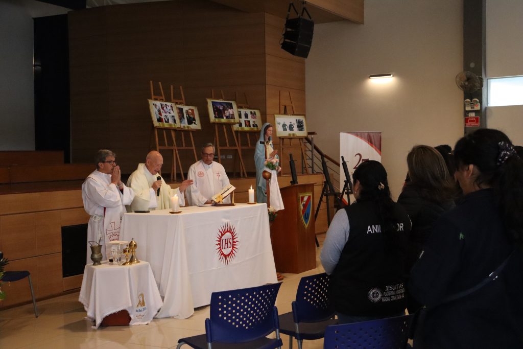 La jornada inició con una Eucaristía presidida por el P. Jorge Beneito SJ y concelebrada por los PP. Javier Quirós SJ y Oscar Morelli SJ. Posteriormente, se presentó un video mini reportaje que presenta la historia de la PAR Coraje Tacna- Ilo, seguido de las palabras del P. Javier Quirós, coordinador de la plataforma, quien reflexionó acerca de los desafíos de la PAR en el contexto de los 25 años de creación.