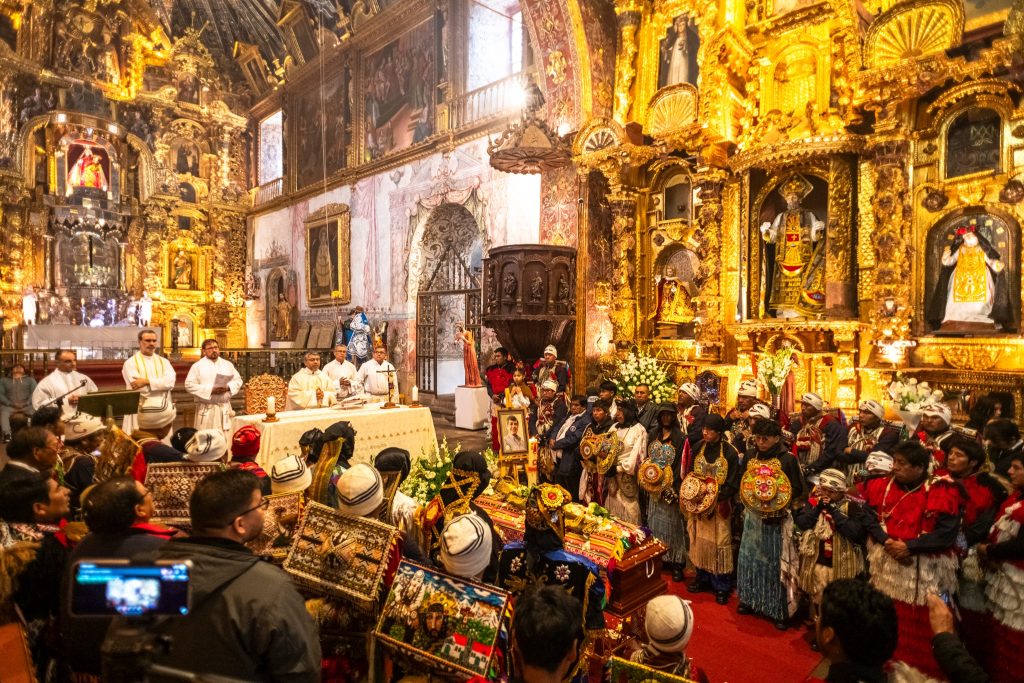 El lunes 26, tras la llegada del cuerpo, fue llevado en procesión desde la Cruz de Andahuaylillas hasta el teatrín de la parroquia donde fue velado.