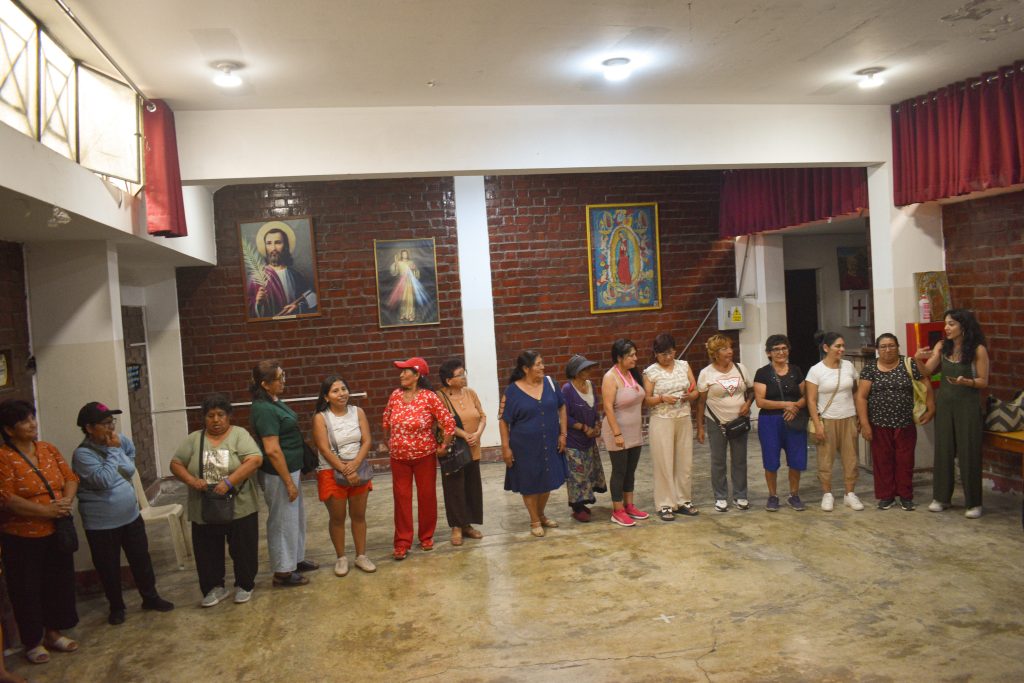 El sábado 28 de febrero, en la Capilla San Judas Tadeo, se realizó la muestra final del taller teatral “Mujeres Agustinianas”, una experiencia artística y comunitaria desarrollada por la organización «Las Comunes» en articulación con promotoras Ayni Warmi, el comedor autogestionario Sexta Zona, promotoras barriales de la Red de Mujeres de El Agustino y promotoras sociales de la Parroquia Virgen de Nazaret.
